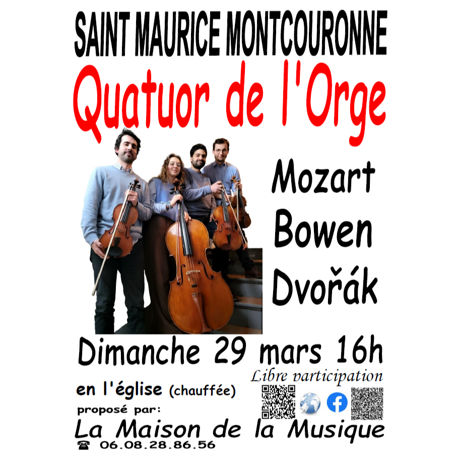 Le Quatuor de l'Orge, composé de 4 jeunes musiciens talentueux - Raphaël Dauriat et Thibault Brétécher, violons, Madalin Noël, Alto et Noémie Dournaud, Violoncelle - nous propose trois œuvres majeures du répertoire pour quatuor à cordes, du classicisme au romantisme :